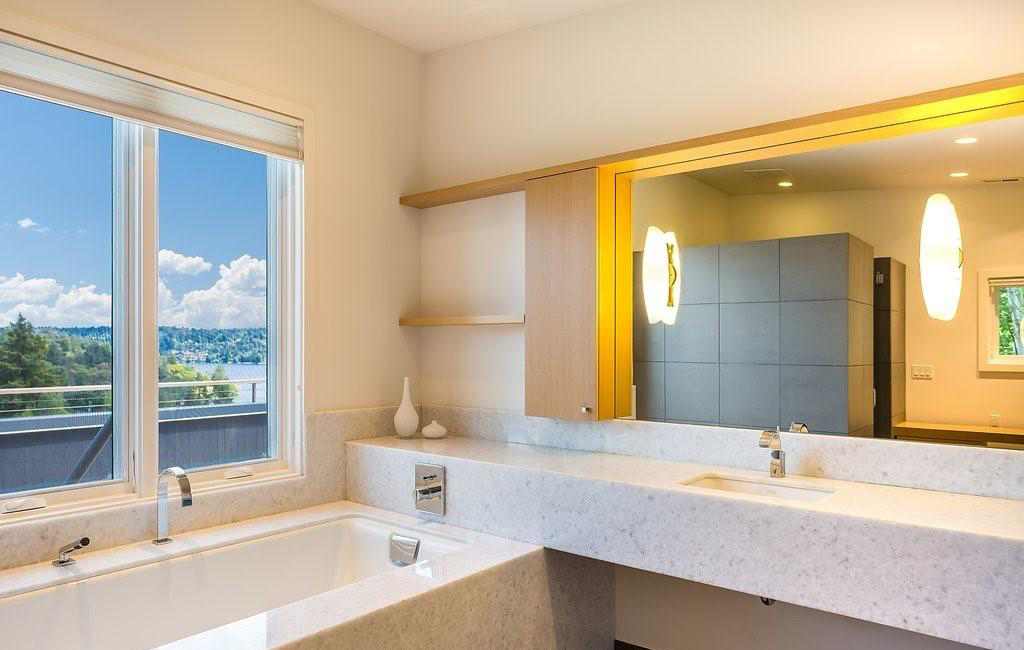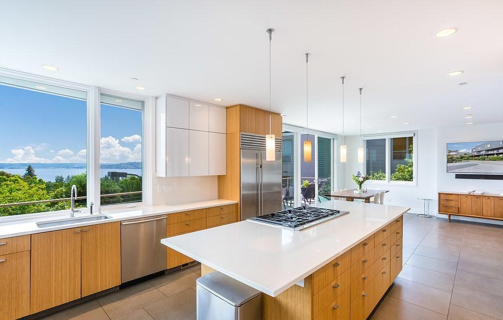 Breathtaking lake & mountain views from this stunning modern home built in 2008. Spacious living room & dining room open to large Trex deck-perfect for entertaining. Private decks off both the master and the office, showcase the views. The kitchen is appointed with top of the line appliances and custom cabinets. Master bedroom suite w/ walk in closet and beautiful bath on upper level, as well as, 4 bedrooms connecting to 2 Jack & Jill bathrooms. Laundry room conveniently located upstairs. Lower level w/ huge rec room, TV room, MIL suite (2nd kitchen downstairs), two more bedrooms & a ton of storage. Sports/basketball court too! Great location, walking distance to parks, and Lake Wash Blvd. Easy access to Columbia City and light rail.