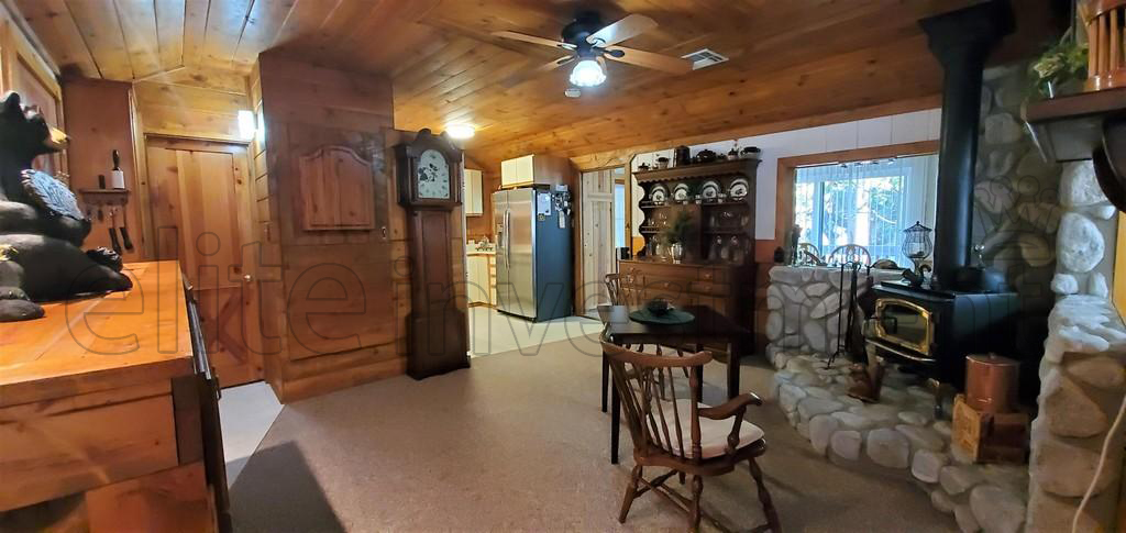 The original cabin was built in 1949 and has since had many upgrades and additions to make it the home it is today. Two private acres located on Deer Creek which runs year around. The home and garage take up approximately a half acre so there is still plenty of room to grow. There is a large living room with a beautiful rock fireplace, three bedrooms plus a man cave overlooking the creek.You also have your own built in gym with expansive creek views which should inspire you to work out, right? A hot tub on the back deck, large screened in porch for those warm summer nights, and an extra large rock fire pit outside. The following is a sampling of what is included, Large Liberty gun safe, Hunter Douglas Duette Blinds throughout. Two wood burning stoves, 3 large refrigerators, Oversized garage with work bench and some tools. Five TV's, some furnishings and much more!!